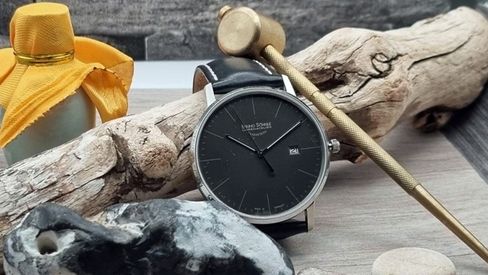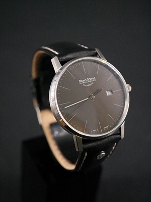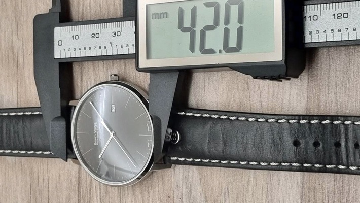 Diese ungetragene Herrenuhr ist eine eleganter Begleiter auf allen Wegen. Mit 42 mm Durchmesserrt und 7,4 mm Höhe trägt sie kaum auf. Sie ist eine klassische Dresswatch, die sehr aufgeräumt und ruhig aussieht.